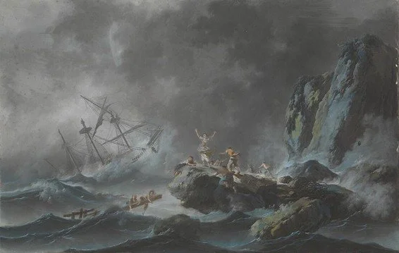 Jean Pillement, A Shipwreck in a Storm (1782). Pastel on gessoed canvas.
